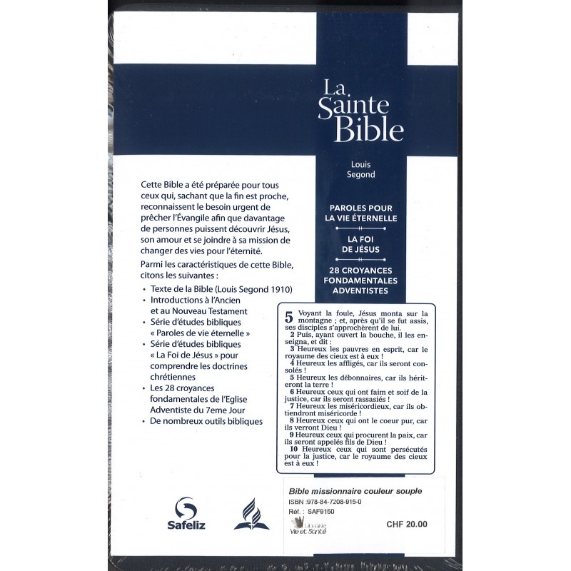 Cette Bible a été préparée pour tous ceux qui, sachant que la fin est proche, reconnaissent le besoin urgent de prêcher l’Évangile afin que davantage de personnes puissent découvrir Jésus, son amour et se joindre à sa mission de changer des vies pour l’éternité.