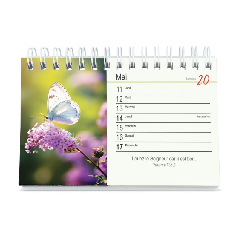 Ce semainier, présenté dans un format original, vous permettra d’organiser facilement chacune des semaines de l’année 2022. Vous pourrez y inscrire pour chaque jour un rendez-vous important ou un temps fort. Chaque semaine est illustrée d’une photo de qualité et d’un texte biblique d’encouragement.