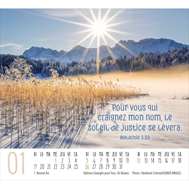 12 merveilles de la création dans un calendrier de bureau. Avec des versets bibliques. Calendrier compact, pratique et esthétique.
