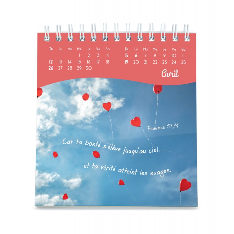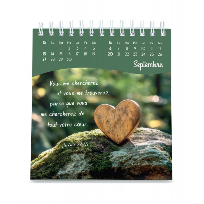 Un des symboles le plus aimé de nos jours est le coeur. Celui-ci fait le thème de ce petit calendrier et la Bible en parle abondamment.