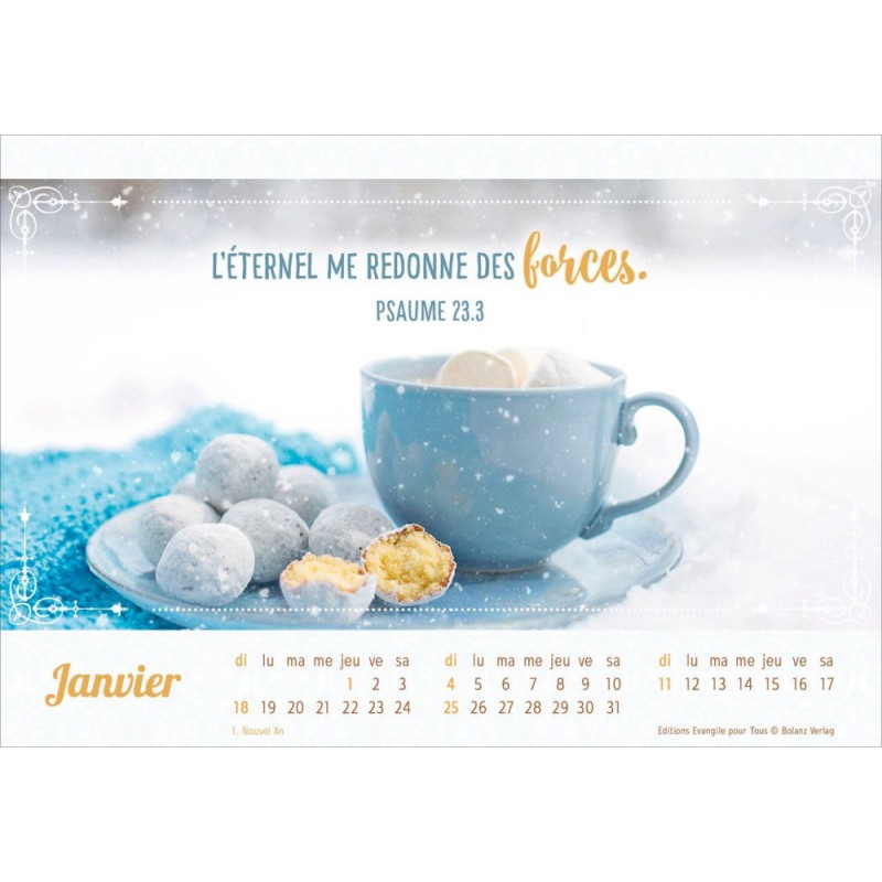 Calendrier panoramique avec 12 cartes postales et versets bibliques