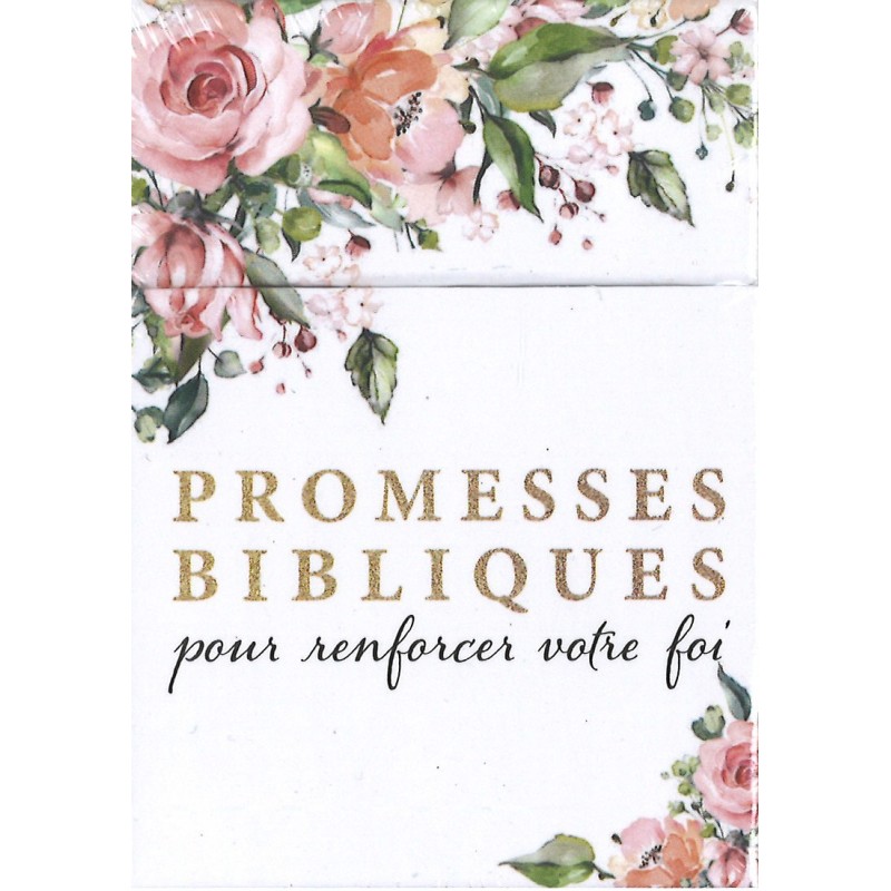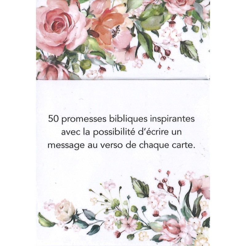Cofret contenant 50 promesses bibliques inspirantes avec la possibilité d'écrire un message au verso de chaque carte.