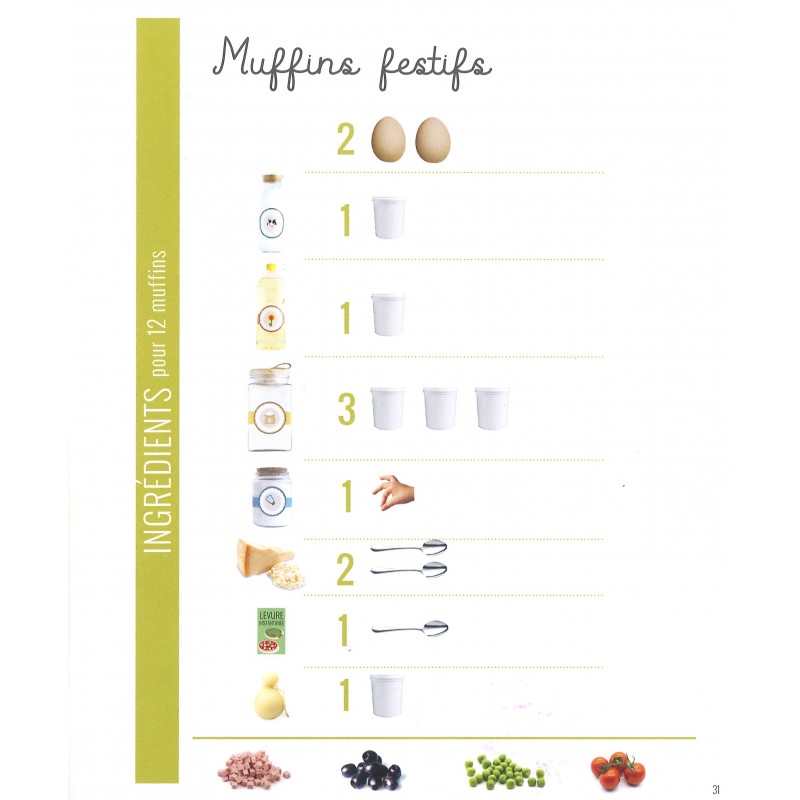 La collection de cuisine qui permet à un enfant non-lecteur de préparer très facilement son goûter, sa lunch box ou des recettes de fête ! Dérivée de la méthode Montessori, ce livre rend l'enfant acteur en cuisine. Petites bouchées à la ricotta pour un apéritif festif, mini-pizzas coeur de la Saint-Valentin, gâteau d'anniversaire aux fraises...chaque étape de la recette est détaillée en photo et les quantités sont présentées avec des pots ou des cuillères pour une compréhension immédiate de l'enfant.