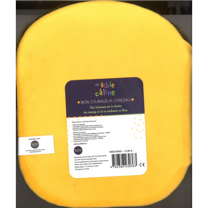 Ce livre adorable est aussi une peluche très douce et réconfortante pour les petits qui pourront s’y blottir et la serrer dans leurs bras. Un texte facile et agréable à lire, des citations bibliques et d’adorables illustrations se combinent pour avancer sur le chemin du courage et de la confiance en soi.