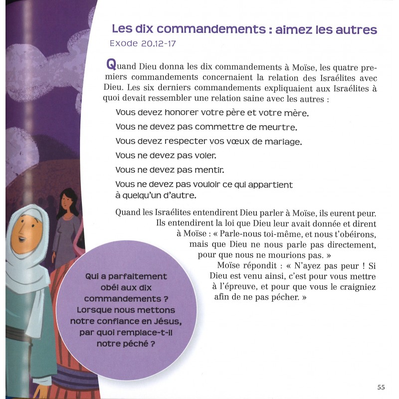 Écoute bien les récits de ce livre. Tu verras que, dès le commencement, des signes annonçaient la venue de Jésus. Dieu a utilisé l’arche pour sauver Noé, annonçant le jour où nous pourrions trouver notre salut en Jésus. Il a promis de bénir la famille d’Abraham, et cette bénédiction s’est accomplie en Jésus. Les sacrifices de l’Ancien Testament renvoient à Jésus, qui est devenu le sacrifice suprême pour nous.