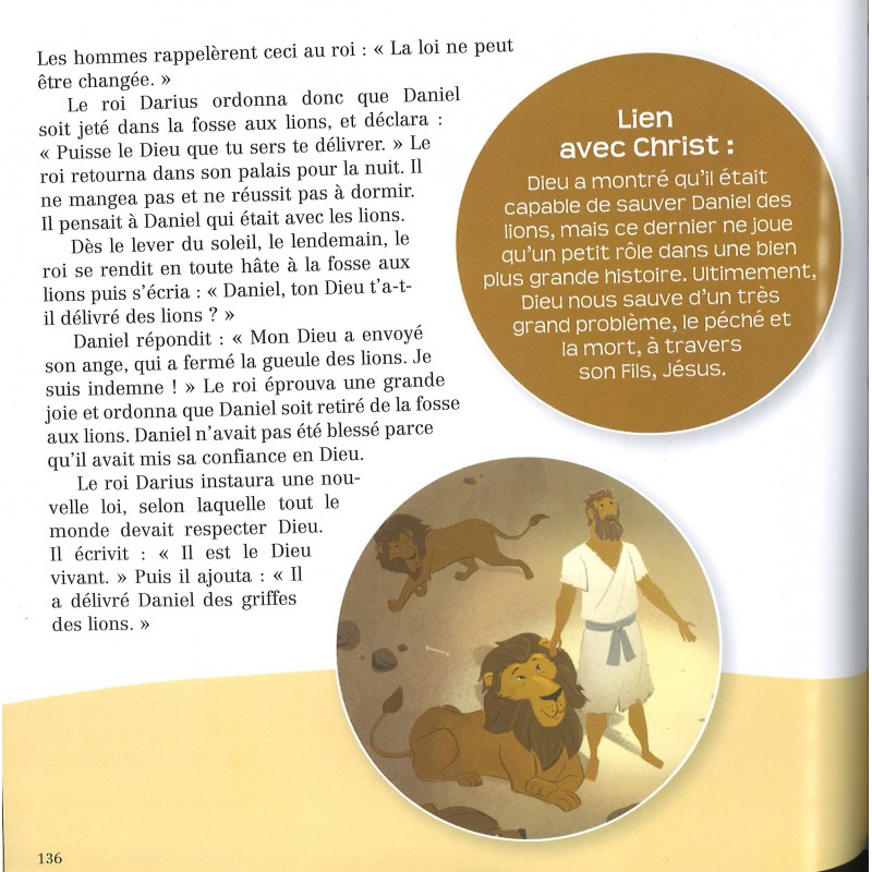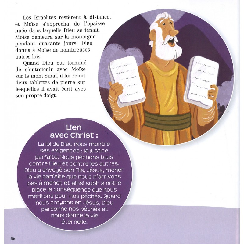 Les pages de la Bible sont remplies de récits qui nous conduisent à Jésus. Ce livre raconte cette histoire. C’est l’histoire de Jésus dans toute la Bible. Mais ce n’est pas un simple recueil de récits sans lien entre eux à propos de personnages sans importance. C’est une seule et grande histoire où tout renvoie au Fils de Dieu. Toute la Bible est centrée sur Jésus. La Bible commence avec la Création, avec Adam et Ève. Quand le péché est entré dans le monde, Dieu a fait une promesse. Il a parlé à Abraham… puis à Moïse… à David… à Salomon… et à bien d’autres encore, comme Esther et Ruth. Il a promis que le Messie viendrait un jour délivrer l’humanité du péché et