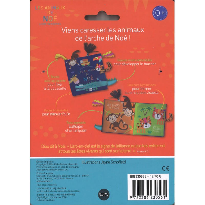 Souple, léger et facile à attraper, Les animaux de Noé se glisse partout et s’accroche aisément à la poussette ou à l’arche d’éveil grâce à sa bande auto-agrippante.