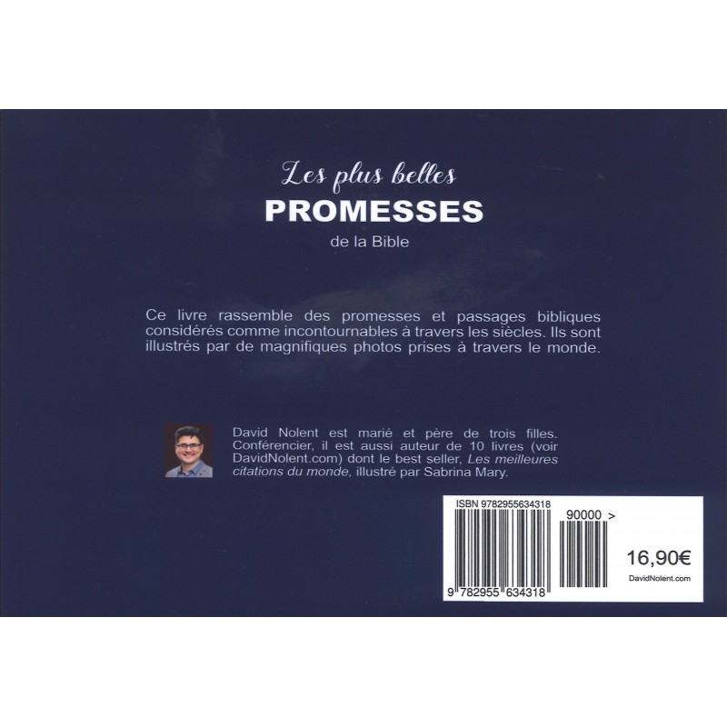 Ce livre rassemble des promesses et passages bibliques considérés comme incontournables à travers les siècles. Ils sont illustrés par de magnifiques photos prises à travers le monde.