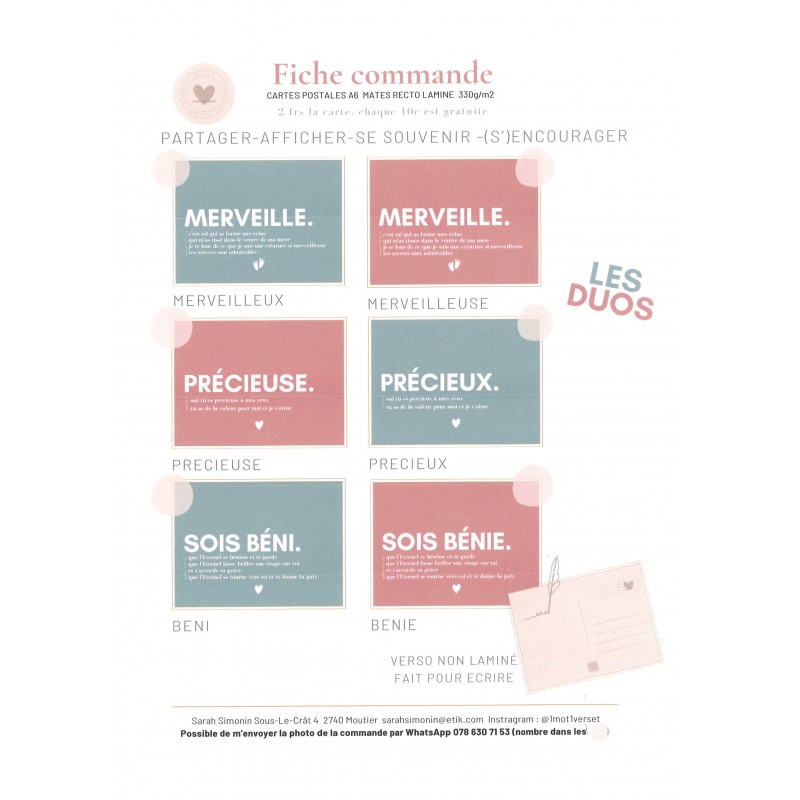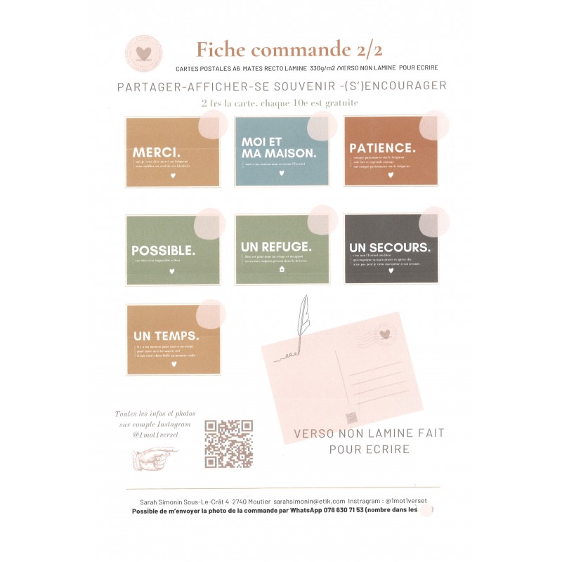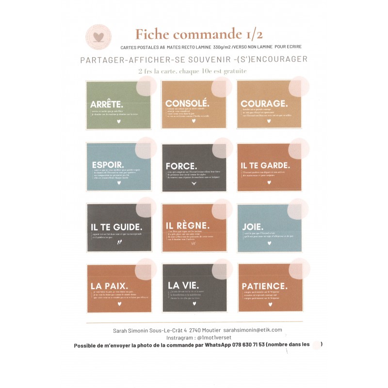 Cartes postales A6 mates avec verset biblique pour partager - afficher - se souvenir - (s')encourager.